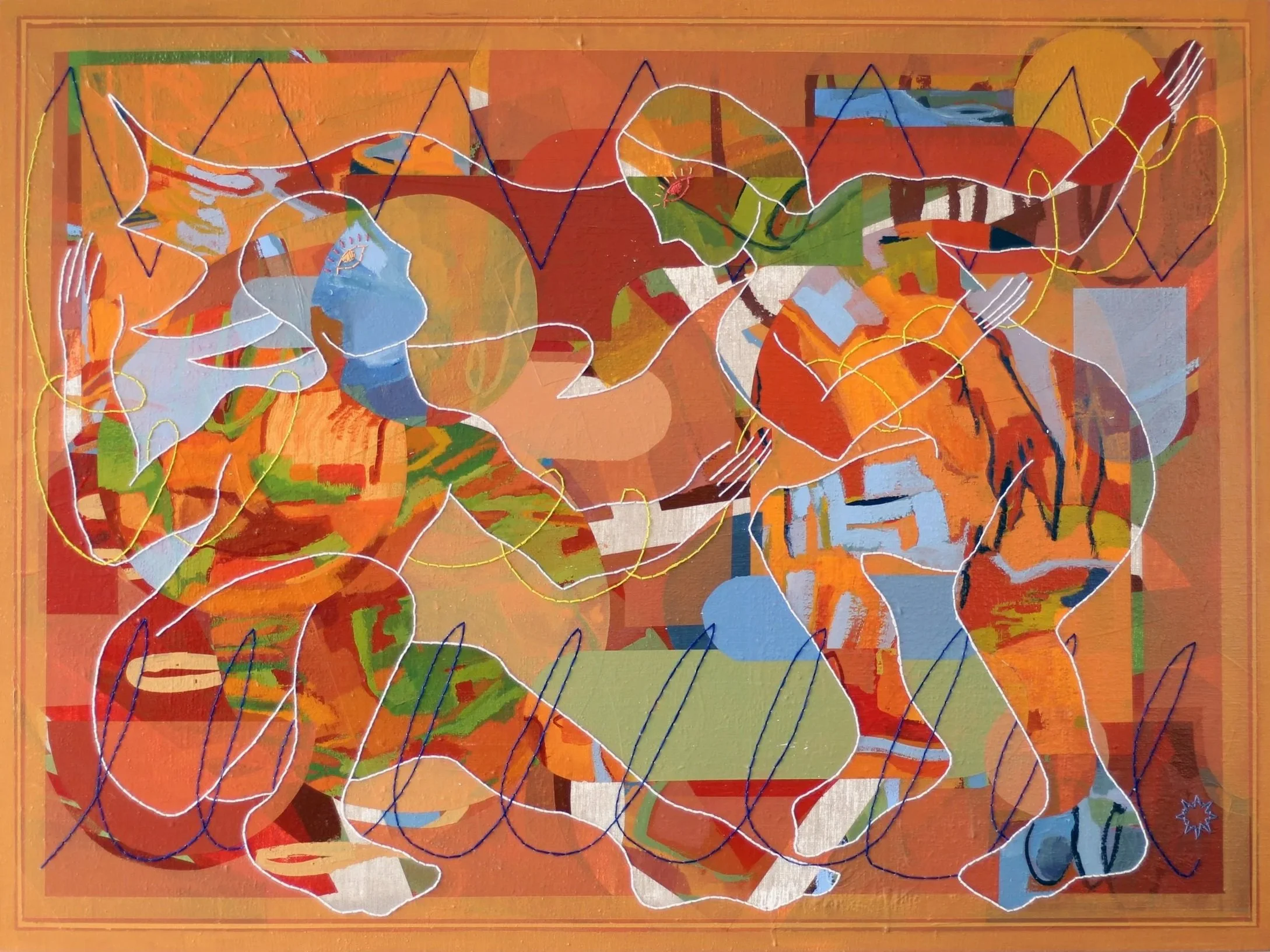 Acrylic paint, Needle and Thread on linen